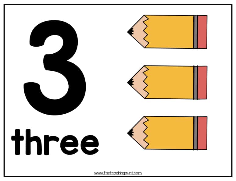 The number words will help children associate numerals with written words.