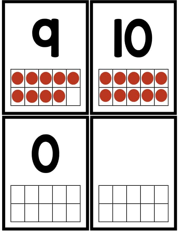 The numbers 4 and 8 are missing in your number flashcards for 10 frames, just fyi.